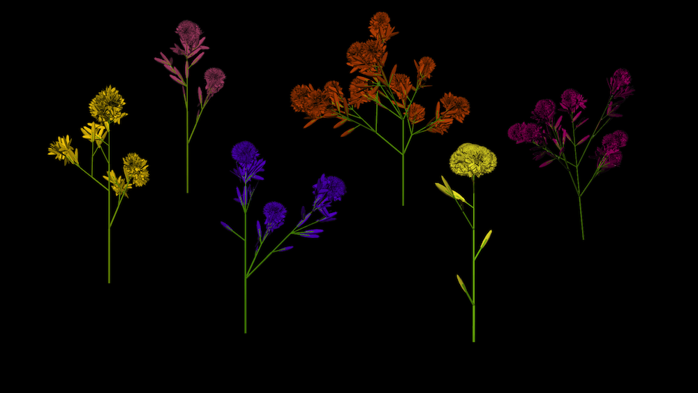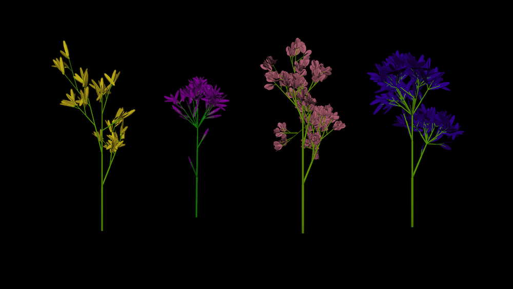 Final project for CSCI1230: Computer Graphics. I worked with Ellen Jiang, Zev Izenberg, and Victoria Tan. We created an environment for the HTC Vive, focusing on L-System generation, procedural terrain generation, and crepuscular rays. I was responsible for implementing L-System generation, which we used for generating trees and flowers. These are examples of flowers that I created parameters for and generated. Implemented in C++ and OpenGL.
