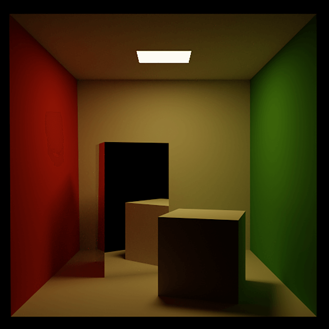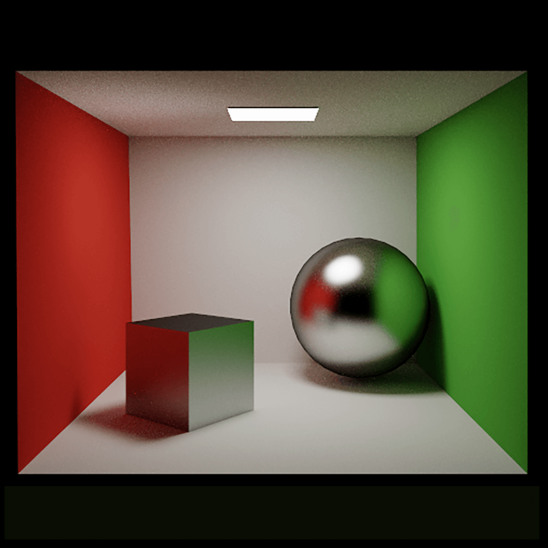Project for CS2240: Interactive Graphics, a graduate seminar with Daniel Ritchie at Brown University. Implemented a recursive Monte Carlo path tracer with Russian Roulette termination, event splitting, and full global illumination (with color bleeding and caustics). Also implemented stratified sampling, attenuated refracted paths, and BRDF importance sampling. Supports diffuse, glossy, reflective, and dielectric refractive BRDFs. Implemented in C++ and OpenGL.